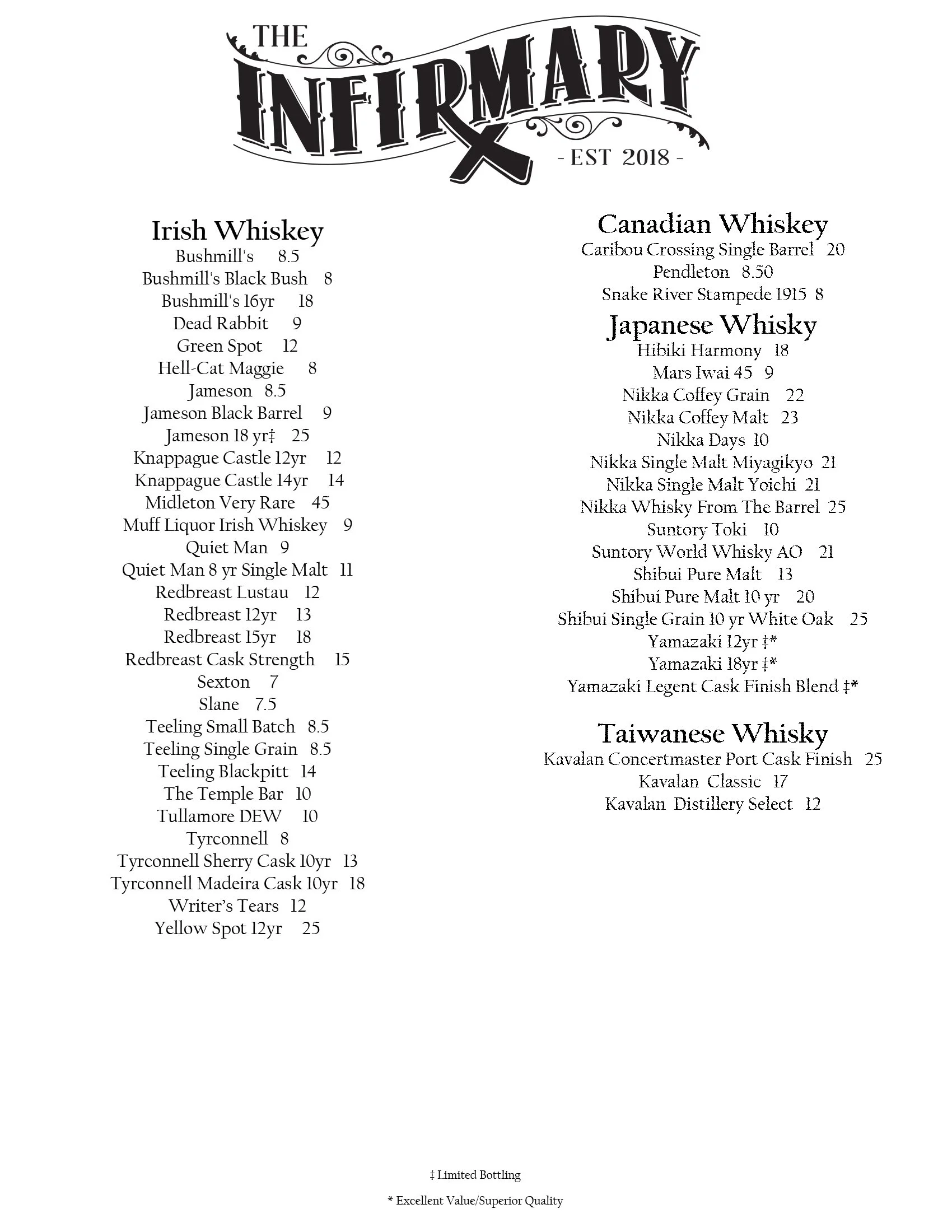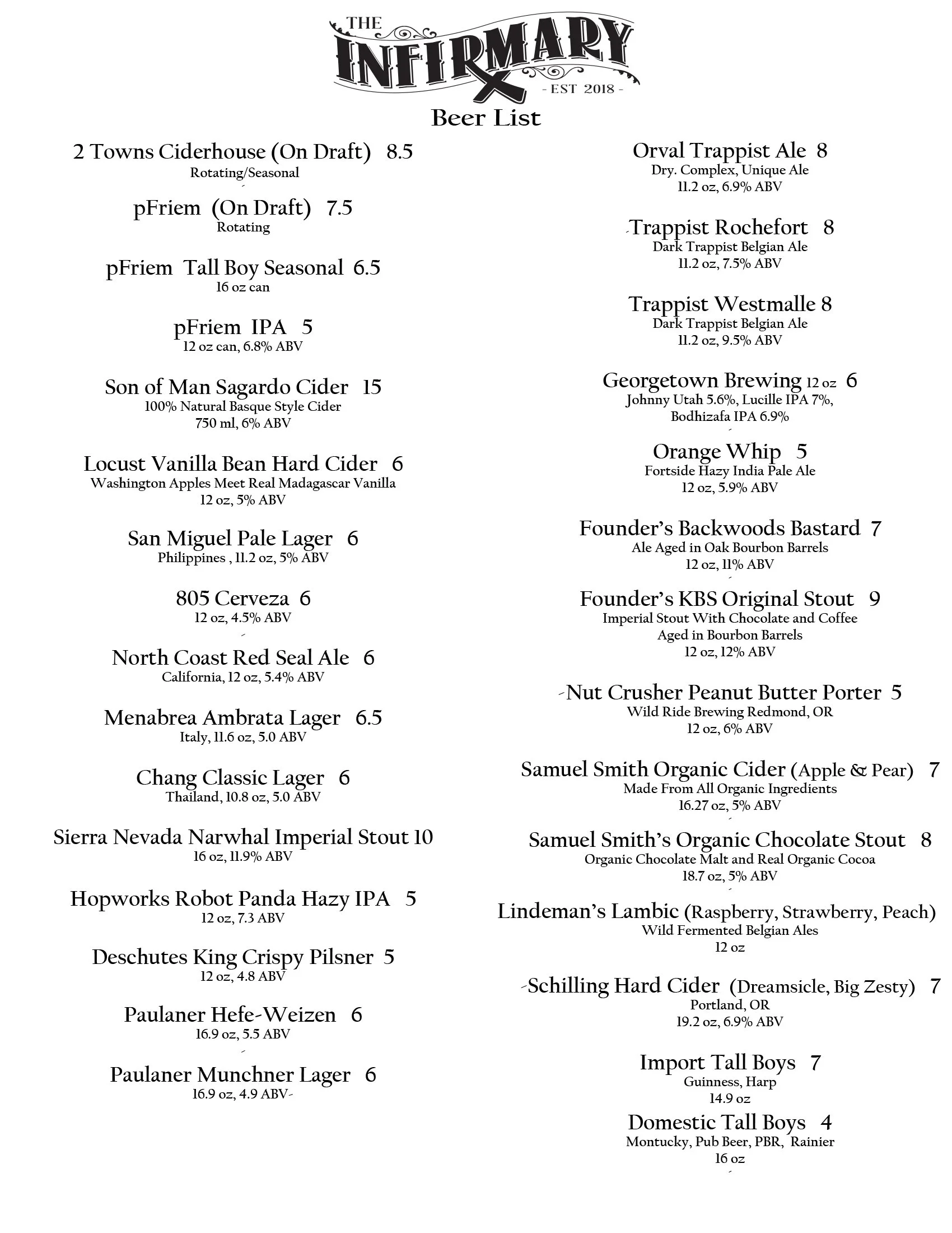 The Infirmary is a new addition to Shanahan’s Pub & Grill. It is located at 1708 Washington St., adjacent to Shanahan’s and is connected via a shared patio. The Infirmary offers over 300 whisk(e)ys as well as other unique and rare spirits. We also have a wide range of cigars that can be enjoyed on our large, heated, and smoke friendly patio.